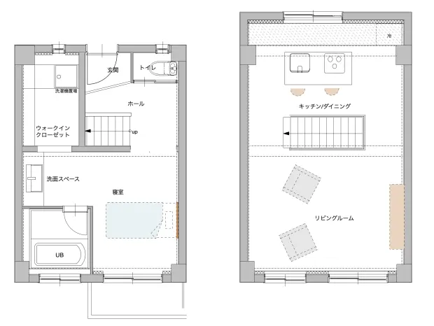 今回は管理組合と協議の末、テストケースとして工事許可を頂いて2Fにキッチン・リビングを持ってくる「1人暮らし仕様」にしました。