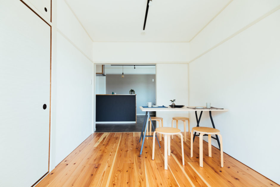 無垢のフローリングって、経年変化を楽しめるし、木を削ってメンテナンスができるから、入居者の入れ替えのたびに貼り替える必要性がない。回していけるから、長い目で見ればコストがかからない資材なんです。初期費用がかかるので賃貸で無垢材が採用されることは少ないんですけど、僕らが手がけた賃貸物件で無垢床を採用されたオーナーさんが「無垢の部屋に住んでる人は部屋をきれいに使ってくれる」って言うんですよ。退去の時にも「すごく良かったから自分もリノベして住みたい」という話をしてくださる方も多いんです。