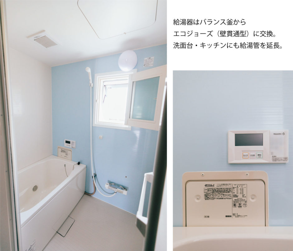 換気扇もなく、浴槽がバランス釜のため小さくて使いづらかった浴室には、ユニットバスを導入し、24時間換気も実現。使いやすさのみならず、古い団地特有の湿気やカビのリスクを大幅に軽減しました。
